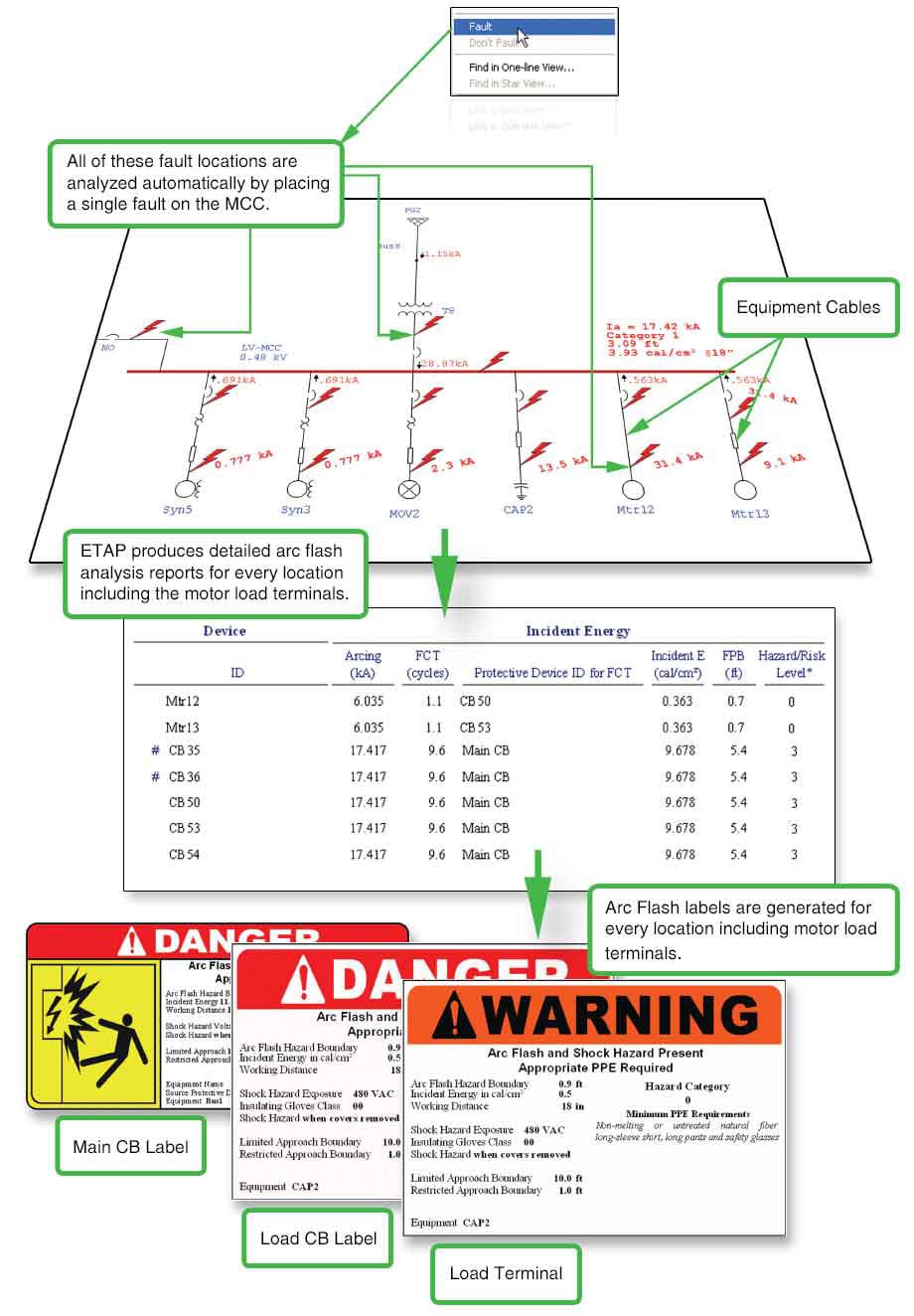 弧閃分析模塊還包括全面的單相和三相弧閃計算,以及一個寶貴的弧閃分析儀工具,用于總結(jié)弧閃研究的結(jié)果。